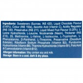 Sweeteners (Sucrose, INS 420), Liquid Chocolate Flavour (0.40%), Colour (INS 150a), Ascorbic Acid (Vitamin C), Acidity Regulator (INS 330), Preservative (INS 211), Liquid Mixed Fruit Flavour (0 20%), L-Lysine Hydrochloride, L-Leucine, Nicotinamide (Niacin), Thickener (INS 415), DL Methionine, L-Valine, L-Isoleucine, L-Tryptophan, L-Phenylalanine, D-Panthenol, L-Threonine, Preservative (Disodium Edetate), Riboflavin Sodium Phosphate (Vitamin B2), Pyridoxine Hydrochloride (Vitamin 86), Thiamine Hydrochloride (Vitamin B1), Folic Acid & Cyanocobalamin (Vitamin 812).