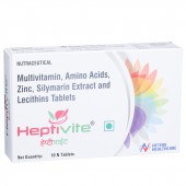 Heptivite Tablet is a nutraceutical supplement, enriched with Multivitamin, Amino Acids, Zinc, Silymarin Extract & Lecithins.