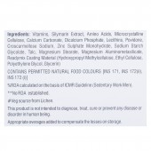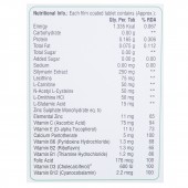 Energy: 1.335 Kcal, Carbohydrate: 0.00 g, Protein: 0.165 g, Total Fat: 0.075 g, Total Sugar: 0.00 g, Added Sugar: 0.00 g, Sodium: 0.00 mg, Silymarin Extract: 250 mg, Lecithins: 75 mg, L-Carnitine: 50 mg, N-Acetyl L-Cysteine: 50 mg, L-Ornithine HCl: 50 mg, L-Glutamic Acid: 15 mg, Zinc Sulphate Monohydrate eq. to Elemental Zinc: 11 mg, Vitamin C (Ascorbic Acid): 75 mg, Vitamin E (D-alpha Tocopherol): 11 IU, Calcium Pantothenate: 5 mg, Vitamin B6 (Pyridoxine Hydrochloride): 1.3 mg, Vitamin B2 (Riboflavin): 1.3 mg, Vitamin B1 (Thiamine Hydrochloride): 1.2 mg, Folic Acid: 176 mcg, Vitamin D3 (Cholecalciferol): 600 IU ,Vitamin B12 (Cyanocobalamin): 2.2 mcg