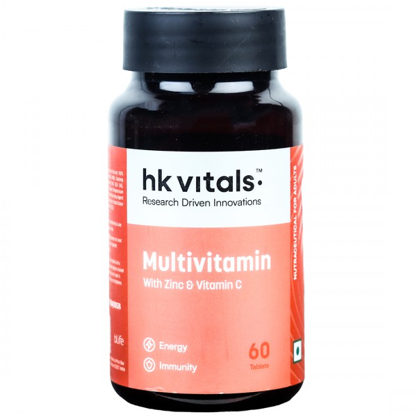 HK Vitals Multivitamin With Zinc & Vitamin C Tablet is a nutraceutical supplement. It is enriched with multivitamin (Zinc & Vitamin C), which improves energy levels and supports immunity.