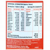 Taurine, Soya Protein Hydrolysate, Panax ginseng Root Extract (10% Ginsenosides), Vitamins, Binding Agent (INS 1201), Disintegrant (INS 468), Coating Agent (INS 464), Disintegrant (Sodium Starch Glycolate), Glidant [INS 553 (iii)], Minerals, Diluent (INS 460 (i)], Anti-Sticking Agent [INS 470 (iii)], Glidant (Magnesium Aluminometasilicate), Diluent [INS 170 (i)], Diluent (Maize Starch), Anti-Sticking Agent [INS 470 (i)], Vehicle (INS 1521), Coating Agent (Ethyl Cellulose), Synthetic Food Colour (INS 122), Vehicle (INS 422) and Natural Food Colours [INS 171 & INS 172 (i)]