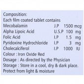Mecobalamin: 1500 mcg, Alpha Lipoic Acid: 100 mg, Folic Acid: 1.5 mg, Pyridoxine Hydrochloride: 3 mg, Cholecalciferol: 1000 IU