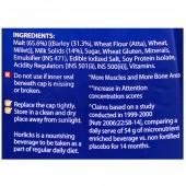 Malt (65.6%) [Barley (31.3%), wheat flour (Atta), wheat, Millet)], milk solids (14%), sugar, wheat gluten, minerals, emulsifier (INS 471), edible iodized salt, soy protein isolate, acidity regulators [INS 501 (ii), INS 500 (ii)], Vitamins