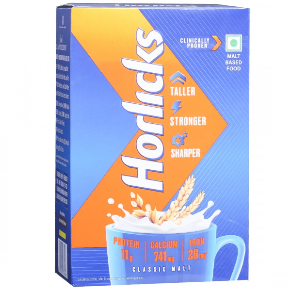 Horlicks is a nutritional drink designed to help children grow taller, stronger, and sharper. Enriched with 27 essential nutrients, including Folic Acid, Vitamin D, Protein, Calcium, and Iron, it supports mental development and physical strength. With added Zinc and Vitamin E, it also boosts immunity. For over 150 years, Horlicks has remained dedicated to its mission of delivering high-quality, wholesome nutrition. Made from milk, wheat, and barley, and fortified with vital nutrients, regular consumption of Horlicks as part of a balanced diet promotes healthy growth, stronger bones, increased muscle development, and enhanced focus.