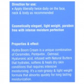 Hydra Boom Cream is an unique combination of Ceramides, Pentavitin, Oatmeal, Hyaluionic acid, infused with Natural Butters that hydrates, softens & heals dry skin conditions that requires intensive moisturizing. It's a non-greasy & light weight formula that quickly absorbs the moisturization and restore skins barrier. It also provide long lasting moisturization & hydration upto 72 hours.Making it suitable for all skin types & every day use. It also free from paraben.