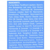 Purified Water, Paraffinum Liquidum, Aloe Barbadensis Leaf Juice, Ce1y1 Alcohol, Stearic Acid, Poly§orbate 80, Simmondsw Chinensis (Jojoba) Seed Oil, Niacinamide, Dimethicone, Petrolatum, Butyrospermum" Park,' (Shea) Butter. Glyceryl Stearate (and) PEG-100 Stearate, Avena Sativa (Oat) kernel flour, Saccharide Isomerate (and) Aqua (and) Citric Acid (and) Sodium Citrate, Laminaria Digitata Extract & Cetyl-PG Hydroxyethyl Palmitamide & Ceramide 1 & Ceramide 2 & Ceramide 3 & Ceramide 4 & Ceramide 6 II, Hyaluronic Acid, Tocopheryl Acetate, Avena Sativa (Oat) Kernel Oil, Theobroma Cacao (Cocoa) Seed Butter, Phenoxyethanol, Butylated Hydroxytoluene, Sodium Acrylate/Sodium Acryloyldimethyl Taurate Copolymer, Rosa Damascena (Rose) Flower Oil, Disodium EDTA,Triethanolamine, Perfume.
