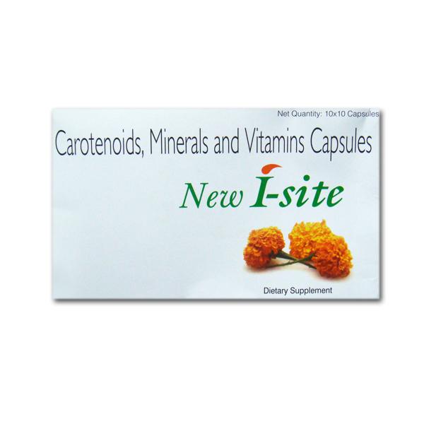 I Site (New) Capsule contains lutein, Beta-Carotene,Copper, Manganese, Selenium, Zinc, Vitamin C, Vitamin E. It acts as nutraceutical, for human well-being.