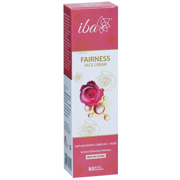 Iba Fairness Face Cream Nature White Complex + Rose formulated with Nature White Complex - a revolutionary formulation of licorice extract, vitamin E, vitamin B3 and vitamin B5 which promotes even and lighter skin tone, moisturizes and reduces dark spots. A revolutionary formula containing Nature White Complex, Rose Petal Extract & UV Filters to provide instant and lasting fairness along with sun protection and nourishment.