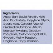 - Generic Name: Aqua, Arbutin, Cetearyl Alcohol, Cetomacrogol 1000, Disodium Phosphate, Fragrance, Glycerin, Isopropyl Myristate, Kojic Acid Dipalmitate, Light Liquid Paraffin, Methyl Paraben, Oxidized Glutathione, Propyl Paraben, Propylene Glycol, Stearic Acid