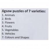 5) Jigsaw Puzzle of 7 Varieties : Animals, Birds, Flowers, Fruits, Vegatables, Vehicles, Colours and Shapes.