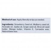 Strawberry Seed oil, Mulberry seed oil, Avocado oil, Jojoba oil, Grape seed oil, Broccoli seed butter, Mango butter, Vitamin E, Carnauba wax, Natural bees wax.