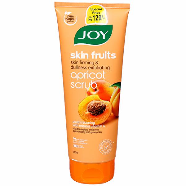 Joy Skin Fruits Gentle Exfoliating Apricot Scrub Gently scrubs away complexion-dulling impurities, leaving skin feeling fresh, moisturized and healthy looking. Active Fruit Boosters help skin retain its softness,clarity and suppleness.Regular exfoliation increases skin’s ability to absorb moisture,thereby fighting fine lines and imparting a radiant glow.