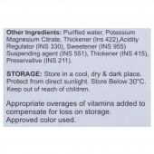 Purified water, Potassium Magnesium Citrate, Thickener (Ins 422),Acidity Regulator (INS 330), Sweetener (INS 955) Suspending agent (INS 551), Thickener (INS 415), Preservative (INS 211).