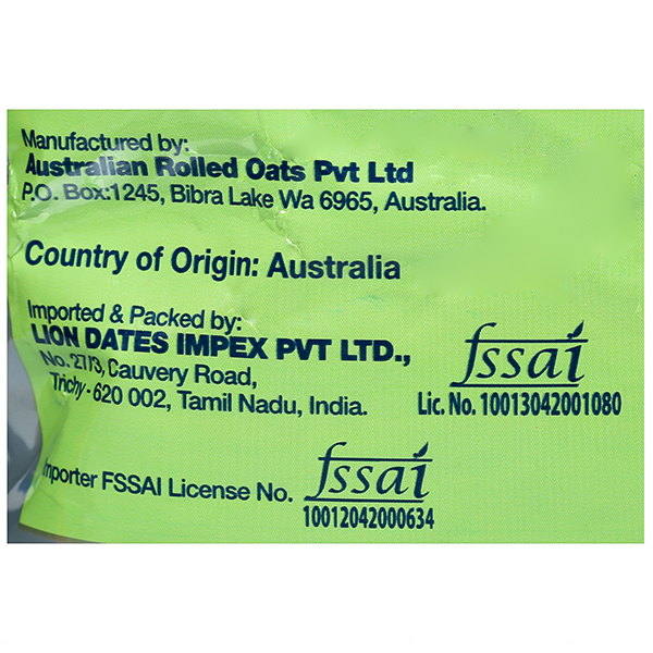 FSSAI Lic. No. - 10013042001080 // 10012042000634Product Information- Lion offers this vegetarian australian oats weighing 1.5 kilograms in total. The shelf life of this product is 9 months.