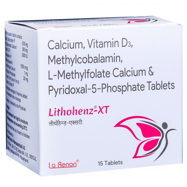 Lithohenz XT Tablet is prescribed to treat and prevent nutritional deficiencies, improve nerve function, support bone health and aid in general well-being. It is formulated with calcium, vitamin D3, Methylcobalamin, l-methylfolate calcium and pyridoxal-5-phosphate these supports cognitive and cardiovascular health, enhance immune function and helps in production of red blood cells, reducing the symptoms of anaemia.