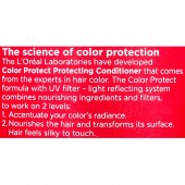 Loreal Paris Color Protect Conditioner enriched with linseed oil & UVA/UVB filters, helps nourish, protect and smoothen the coloured hair. Its colour protecting formula with UV filter, light reflecting system combines nourishing ingredients and filters, works on 2 levels such as making hair color look more radiance and transforming the surface of the hair by making silky smooth. The Linseed oil in it provides long lasting intense shine and radiance for prolong period. It also detangle the frizzy hair preventing roughness and makes the hair soft to touch. It also results in providing color protection for up to 30 washes.