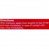 - After shampoo, apply from lengths to tips of hair and rinse completely.
