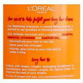 Dreaming of long hair but tired of long hair problems like hair breakage, damaged hair, and split ends? Save your last 3cm and instantly transform your long hair with the new L’Oréal Paris Dream Lengths Restoring Shampoo. Infused with Vegetal Keratin and Castor Oil, Dream Lengths Restoring Shampoo intensely repairs the lengths of your hair and helps seal split ends so you can achieve your long hair goals without the long hair problems. With vitamin B3 and B5, this shampoo visibly repairs damaged hair without any weigh down, and leaves your hair feeling 2X stronger. For best results and reduced hair breakage, use the L’Oréal Paris Deam Lengths Restoring Shampoo with Dream Lengths Detangling Conditioner and Dream Lengths No Haircut Cream (Leave In Cream).
