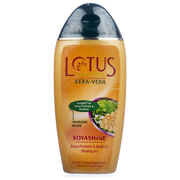 Lotus Soyashine is a specialist product that gently cleanses hair and delivers moisturizing proteins. This unique herbal combination of Soya Protein and Brahmi strengthens and nourishes lifeless thin and delicate hair, and also adds luster and bounce to then. Hydrolysed Soya Protein penetrates and strengthens hair to protect against damage while Brahmi darkens hair color and promotes hair growth as well. Both are Ayurvedic ingredients known for curing damaged hair and relieving the scalp. To use, apply the desired quantity on wet hair and lather it up. Rinse thoroughly.