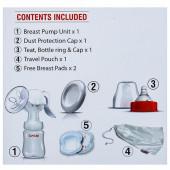 Content Included- Breast Pump, Dust Protection Cap, Teat, Bottle Ring and Cap, Travel Pouch, Free Breast Pads