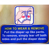 - Pull the diaper up like pants. To remove, simply tear off both sides and pull the diaper down.