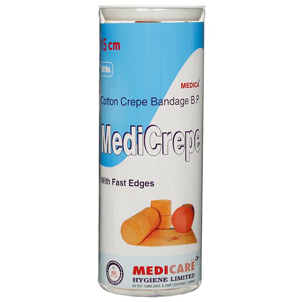 The Medicrepe Cotton Crepe Bandage (15 cm x 4 m) is an useful medical bandage commonly used for providing support, compression, and protection to injured or sprained joints and muscles. Here are some key details about this product: