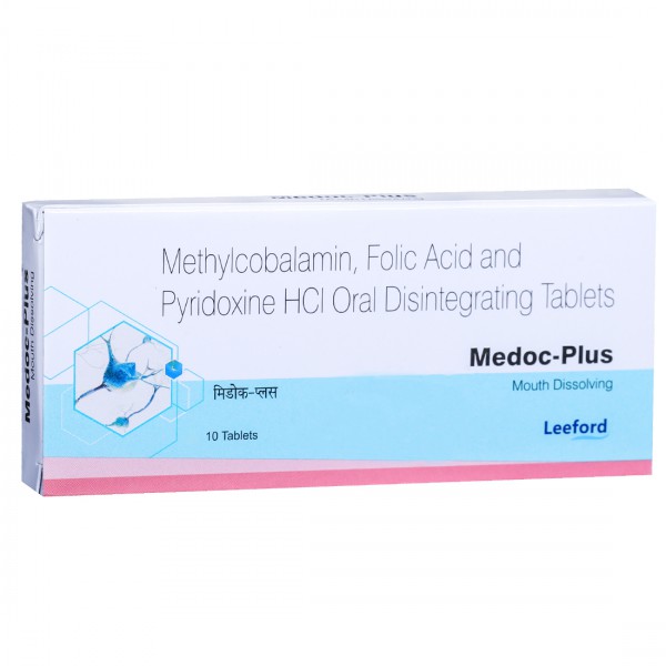 Medoc Plus is a mouth-dissolving tablet formulated with Methylcobalamin, Folic Acid, and Pyridoxine HCl. It is designed to address nutritional deficiencies effectively.As well as it aids in the treatment of anemia and supports proper growth and development in the body.