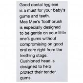 Product Information - Good dental hygiene is a must for your baby’s gums and teeth. Mee Mee Toothbrush is especially designed to be gentle on your little one’s gums without compromising on good oral care right from the teething stage. Soft bristles from DuPont, keep your baby's gums free of food particles, bacteria and plaque. Erogonomic design with narrow brush head for your tiny tot's little mouth.