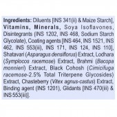Diluents [INS 341(ii) & Maize Starch], Vitamins, Minerals, Soya Isoflavones, Disintegrants (INS 1202, INS 468, Sodium Starch Glycolate), Coating agents [INS 464, INS 1521, INS 462, INS 553(iii), INS 171, INS 124, INS 110], Shatavari (Asparagus densiflorus) Extract, Lodhara (Symplocos racemose) Extract, Brahmi (Bacopa monnieri) Extract, Black Cohosh (Cimicifuga racemose-2.5% Total Triterpene Glycosides) Extract, Chasteberry (Vitex agnus-castus) Extract, Binding agent (INS 1201), Glidants [INS 470(iii) & INS 553(iii)].