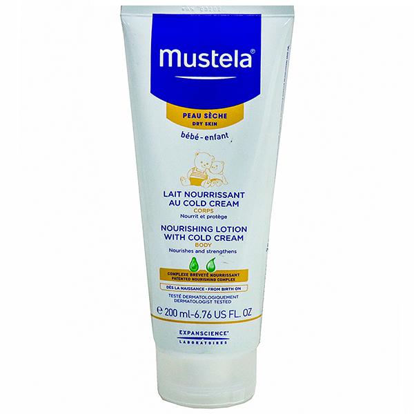 - The Mustela Nourishing Lotion With Cold Cream for Dry Skin instantly cocoons delicate skin in a comforting veil of lightweight hydration. Through restoring the skin’s moisture barrier, the cellular resources of young skin will feel the immediate and long-lasting effects of improved hydration.