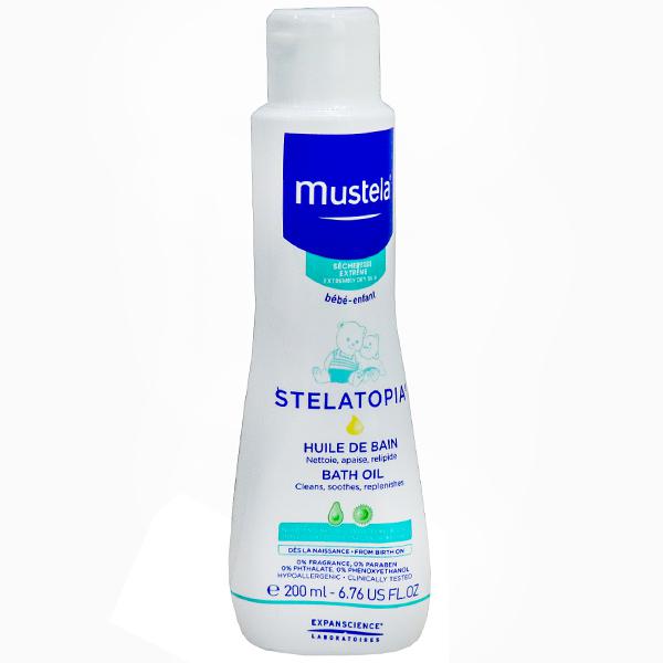 Mustela stelatopia bath oil 200ml with lipid oil texture envelops the baby body gently. This bath oil restores the hydrolipidic film immediately and permanently of the entire body, instantly soothes feelings of irritation and tightness. It gently cleanses and leaves a protective film on the skin, and compensates for the drying effects of the toilet (hard water). Its formula contains several active ingredients of natural origin: - Sunflower oil distillate known for its soothing properties, it brings essential lipids for the construction of the skin barrier. Avocado oil helps to strengthen and protect the hydrolipidic film to promote the restoration of impaired skin barrier in atopic prone skins. Chamomile extract with softening properties. The vegetable oils participate in relipid action. Tested under dermatological and paediatric control. High tolerance. Hypoallergenic. 0 percent fragrance, paraben, phthalate, phenoxyethanol, edta, sls. Use: From the birth, pour 2-3 caps in the bath water. Do not rinse to maintain optimum efficiency. . Indication : Baby hygiene and bath.