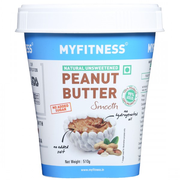 Myfitness Peanut Butter Natural Unsweetened Smooth is a proprietary food spread made from pure roasted peanuts. It is a good source of dietary fiber, and is rich in protein. Additionally, the spread contains healthy fats and has no added salt, sugar, hydrogenated oil and zero trans fat.
