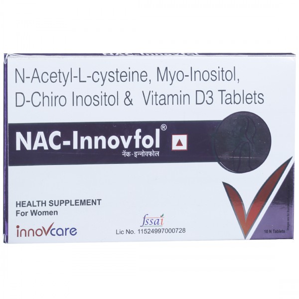 Nac Innovfol Tablet is a health supplement, enriched with N-Acety-l-cysteine, Myo-inositol, D-Chiro-Inositol and Vitamin D3.