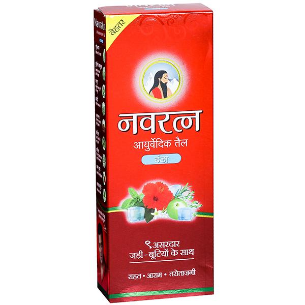 How To Use – Take a required amount of the Navratna Cool Oil and apply it evenly all over the hair, massaging it into the roots of the hair and the scalp. In case of a headache, backache, physical stress, take a required amount of the oil and massage it on the affected areas. For best results, use the Navratna Cool Oil regularly.
