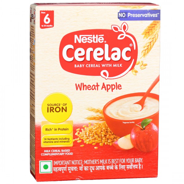 Nestle Cerelac Baby Cereal With Milk Wheat Apple is enriched with the goodness of cereal, milk and fruit as well as 14 nutrients including vitamins and minerals. Additionally it is rich source of iron.