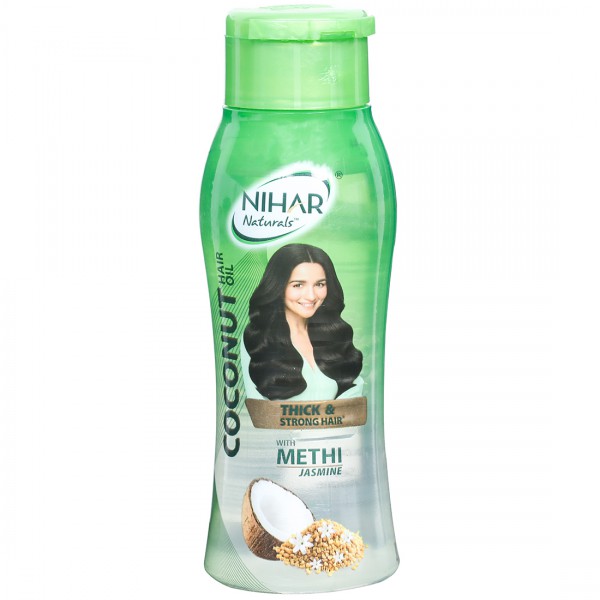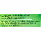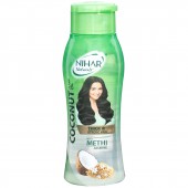 Nihar Naturals Coconut Hair Oil is enriched with jasmine & methi seed extract that makes hair thick and strong. The oil goes 10 times deeper into the hair, making hair strong, soft and shiny.