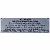 NIVEA MEN Dark Spot Reduction Creme. A breakthrough skin care specifically developed for men's skin. It contains UV filters and licorice extract that reduce dark spots. It is extra light, non-greasy and fast absorbing. It has been developed especially for extra fast absorption by men’s skin. The cream is light, non-greasy and soaks in fully within seconds. With its effective vitamin E formula and pleasant, masculine-fresh scent, it is ideal for face, hands, elbows etc. – anywhere the skin can dry out.