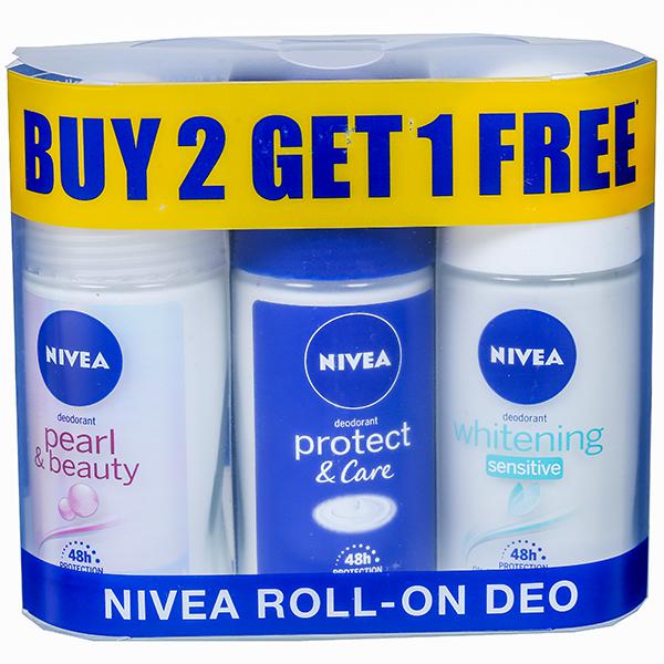 Nivea Whitening Smooth Skin Roll On Deodorant, Nivea Protect & Care Deodorant , Nivea Pearl & Beauty provides 49 hour gentle care