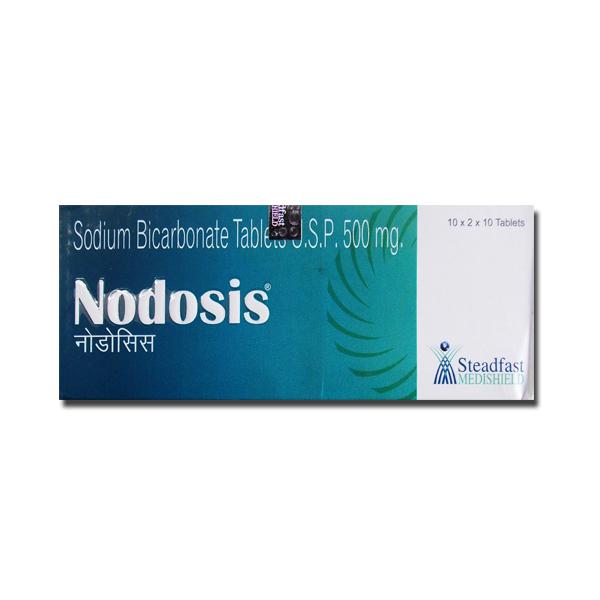Each film coated Nodosis tablet contains Sodium Bicarbonate IP 500 mg and excipients q.s.