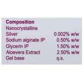 Nanocrystalline Silver: 0.002% w/w, Sodium Alginate: 0.50% w/w, Glycerin: 1.50 w/w, Aloevera Extract: 2.50% w/w, Gel base: q.s.