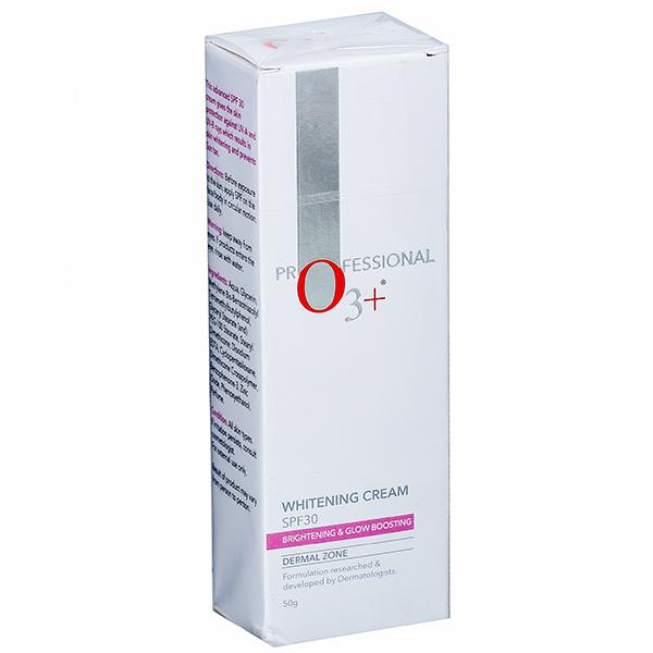 Enhance skin radiance to reveal a luminous skin with O3+ Whitening Cream SPF 30.The O3+ Whitening SPF 30 Cream gives complete protection from UVA, UVB rays while whitening the skin and preventing sun tan. It is suitable for brightening and whitening all types of skin as it offers increased sun protection of 8 Hours.