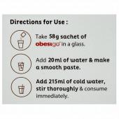 OBESIGO is a scientifically formulated meal replacement. It works with the principle of replacing one of your days major meal either lunch or dinner whichever you are comfortable with.