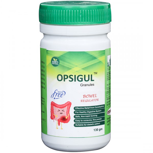 Opsigul Granules is 100% natural, easy-to-consume, fine powders that provide effective relief from habitual and occasional constipation and constipation associated with piles. it is a safe, habit-forming, sugar-free bowel regulator, that makes it suitable for diabetics and relieves constipation in diabetic and elderly patients as well as patients post-surgery.