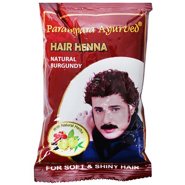 Hair colour natural is 100% ayurvedic. Colour is burgundy. Safe and anti-allergic.