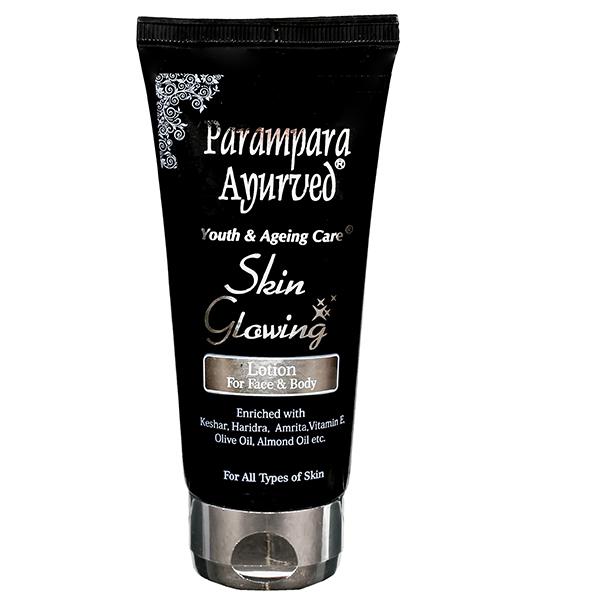 Parampara Ayurved’s Skin Glowing Lotion have a fast absorbing formulation which provides your skin four actions Moisturizing , Softening , Ageing care and Nourishment with the help of Olive Oil , Almond Oil and Vitamin E that penetrate your skin dryness Layer-by-layer. The result your skin look noticeable soft moisturize & healthier for 24 hrs. Applicable for all types skin in all types of season.