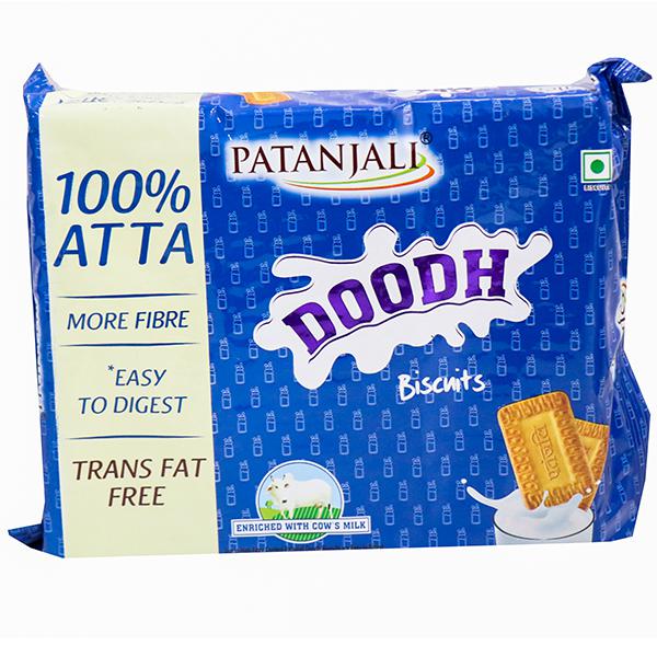 Patanjali natural doodh biscuits are 100% atta biscuits that are enriched with fiber. These biscuits are easy to digest, have no cholesterol, zero trans fats & are enriched with cow's milk. All good things in a packet of biscuits.