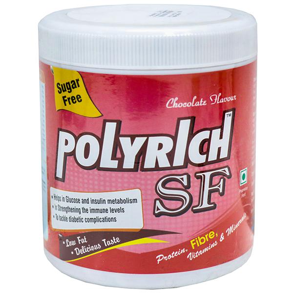 Polyrich SF Chocolate Flavour Powder is a low-fat containing delicious nutritional formula enriched with protein, fiber, vitamins & minerals which helps in glucose and insulin metabolism, strengthening the immune levels and maintaining diabetic complications.