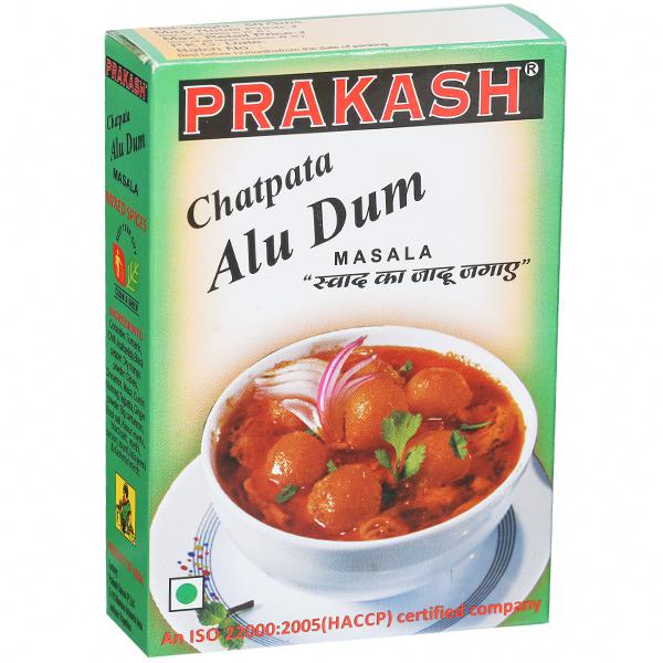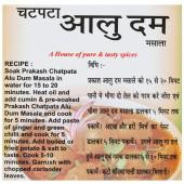 Soak PRAKASH Kashmiri Alu Dum Masala in water for 15-20 minutes. Heat oil and add cumin seeds & pre-soaked PRAKASH ALU DUM MASALA and cook for 5 minutes. Add paste of tomato, green chilli, ginger &cook for 5 minutes. Add boiled or fried potato and salt to taste. Cook for 5 to 10 minutes. Garnish with chopped coriander leaves. Note: For a unique taste, paste of garlic, onion, cashew and raisins can be added to the paste of tomato, green chilli and ginger.