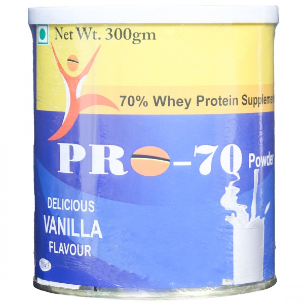 Pro-70 Delicious Vanilla Flavour Powder is a dietary supplement formulated with 70% whey protein concentration.