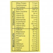 Energy: 40 Kcal, Whey Protein: 7.0 g, Carbohydrate: 1.0 g, Fat Content: 0.5 g.